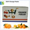 1. Position the appliance --Put the appliance on even surface, bring the handle to the other side to fix the suction cup. --Fasten the wooden grip to the end of the handle --Fasten the trident to the lever and turn the lever until the trident is situated in the midlle of the orange corer. --Press the lever to move the trident easily sideward. Now the appliance can be used. 2. Use of the appliance To peel and core in one easy motion Put the orange on the trident Check: A) whether the orange is well fastened B)whether the trident is positioned right in the middle Turn the wooden grip You can adapt the peel's thickness by moving the knife to the front or the back by turning the wheel in the middle of the orange corer You can remove the core by pressing the lever.