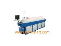 Full hot air lead-free reflow Oven with 7 heating-zones TN370C Product instruction of TN370C: Heating system: TN370C adopts high effective and energy-saving nickel-chromium heating tube. Advanced technology and Long life. And TORCH self-developed hot-air circling system features warm up quickly, which can make PCB component be heated evenly. Protection system: TN370C uses SSR solid relay (450V) that has large power and pressure prevention to non-contact output, safe and reliable. It can monitor the change of temperature and heat number in furnace chamber with the functions fuzzy control and data collection. Then control the heating component with the least pulse and response quickly. TO keeps the Temperature control accuracy, but the equipment can not be damage for the high current and high voltage. And each room fits a safety pipe which is high temperature and high pressure resistant function so that the whole system can run safely and calmly. Accuracy control by IPC and PID intelligent arithmetic. According to the PID intelligent calculation, heat output can be controlled accurately and response to the change of outside to balance the temperature. The whole system has a modularized design. It is convenient to maintenance and disassembles Outer shell and furnace body of TN370C can be opened wholly and automatically. It is convenient to clean and maintain it. Main features for TN370C: 1> Intuitional welding control: TN370C adopts advanced furnace temperature collection system. It can test temperature curve and temperature in furnace hearth. The temperature curve can be recorded or printed at the same time. 2> Smooth and safe transmission system: Drive system adopts a high quality conversion motor and conversion system. It also has a closed-loop governor and Turbine speed reducing box of 1: 100 to keep running smoothly . Speed: 01600mm/min. 3> Stable and safe electric control system: Delay switch protection. After power off, temperature drops evenly so that can prevent damage to transmission component and heater. 4> Power-off protection: To keep PCB output normal. Windows operating platform has a strong functions and high stability.