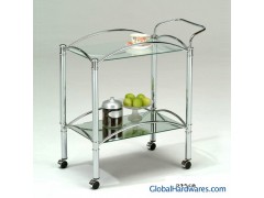 ‧Service Trolley, Chrome steel tube, w/5mm Clear tempered glass + 5mm Mirror. ‧Size: 76 x 36 x 75cm H, (1 pc./ctn.)