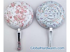 Inside:Non-stick coating; Outside:Color flower; Handle:Bakelite handle with allover printing; Bottom:Spiral bas