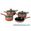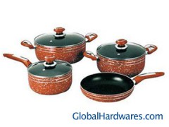 7pcs mable paint set: Inside:Ceramic coating; Outside:Mable paint; Accessories:Bakelite with steel handle,ear and knob, all sprayed with same color paint; Bottom: Induction base