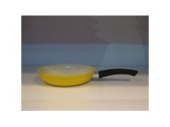 Fry pan Thickness:2.5-3.0mm; Inside:yellow ceramic coating; Outside:yellow heat-resistant paint; Handle:bakelite handle; Bottom:Induction base.