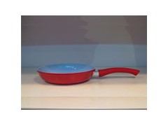Fry pan Inside:White ceramic coating; Outside:Heat-resistant paint; Handle:Bakelite sprayed with red paint; Bottom:Induction base.