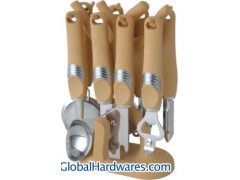 8PCS KITCEHN GADGET SET 1>compages:can opener+pizza cutter+bottle opener+peeler+ice-cream scoop+knife sharper+tea strainer+stand 2>material:stainless steel of 18/0-430 3>price of FOB NINGBO 4>payment:L/C,T/T 5>packing:1set/color-box,12sets/carton And we can offer many kinds of kitchen tools set for your choosing:silicone kitchenware;nylon kitchen tool set;stainless steel kitchen tools set;other kitchenware accessories,ect.Welcome to our homepage for checking.