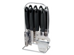 8PCS KITCEHN GADGET SET 1>compages:can opener+pizza cutter+bottle opener+peeler+ice-cream scoop+knife sharper+tea strainer+stand 2>material:stainless steel of 18/0-430 3>price of FOB NINGBO 4>payment:L/C,T/T 5>packing:1set/color-box,12sets/carton And we can offer many kinds of kitchen tools set for your choosing:silicone kitchenware;nylon kitchen tool set;stainless steel kitchen tools set;other kitchenware accessories,ect.Welcome to our homepage for checking.