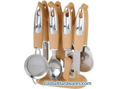 8PCS KITCEHN GADGET SET 1>compages:can opener+pizza cutter+bottle opener+peeler+ice-cream scoop+knife sharper+tea strainer+stand 2>material:stainless steel of 18/0-430 3>price of FOB NINGBO 4>payment:L/C,T/T 5>packing:1set/color-box,12sets/carton And we can offer many kinds of kitchen tools set for your choosing:silicone kitchenware;nylon kitchen tool set;stainless steel kitchen tools set;other kitchenware accessories,ect.Welcome to our homepage for checking.