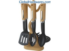 7PCS NYLON KITCEHN TOOLS SET 1>compages:soup ladle+slotted turner+skimmer+solid spoon+spaghetti server+slotted spoon+stand 2>material:PA6 3>price of FOB NINGBO 4>payment:L/C,T/T 5>packing:1set/color-box,12sets/carton And we can offer many kinds of kitchen tools set for your choosing:silicone kitchenware;nylon kitchen tool set;stainless steel kitchen tool set;other kitchenware accessories,ect.Welcome to our homepage for checking.