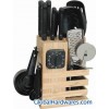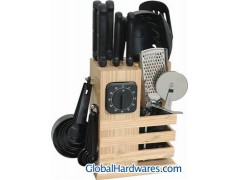 26pcs kitchen tool set,includes:5pcs knives,4pcs Nylon kitchen tools,1pc kitchen scissors,10pcs measuring cup set,1pc timer,&4pcs small utensil Sets,1 wooden block.details:1pc chef knife:8",1pc carving knife:8",1pc boning knife:8",1pc utility knife:5",1pc paring knife:3.5",1pc kitchen scissors:8",1pcs sharper:8",1pc Nylon turner,1pc Nylon slotted turner,1pc Nylon sloted spatula,1pc Nylon ladle,1pc Nylon pasta server,1pcs 1pc oak block.