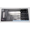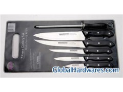 7 piece kitchen knife set,includes:Chef's knife,8"(20.3cm),thickness:1.2mm; slicer knife,8"(20.3cm),thickness:1.2mm";bone knife,5-1/2"(14cm),thickness:1.0mm,;Utility knife,4-1/2"(11.5cm),thickness:1.0mm;Paring knife,3"(7.5cm),thickness:1.0mm;sharpener,7-1/2",dia.:8mm;cutting board,29*19cm,material:2Cr13 stainless steel,PP handle.the type of connect the edge to the handle:insert.