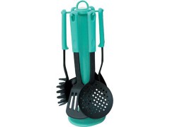7 pcs nylon kitchen tools set,heat resistance up to 210°C,the length:from 27cm to 34cm,including:spoon, slotted turner, skimmer, spaghetti, soup ladle,slotted spoon,rack.material:nylon,handle:PP;material meet FDA or LFGB foodgrade requirements.Packing :opp bag & gift box;