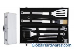 6pcs BBQ tool set,Materials:stainless steel,Thickness of product:1.5mm/pc.includes, spatula:46cm,fork:44cm,tong:41cm,copper brush:42cm,fur brush:42cm,long skewer:36cm,1 set come with carrying aluminium case. our advantage 1. High quality & good price,more quantity, the more reasonable price. 2. Client’s logo is welcome. 3. Can be used for sales,promotion & household