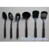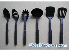 6 pcs nylon kitchen tools set,heat resistance up to 210°C,the length:from 27cm to 34cm,including:spoon, slotted turner, skimmer, spaghetti, soup ladle,slotted spoon.material:nylon,handle:PP;material meet FDA or LFGB foodgrade requirements.Packing :opp bag & gift box.