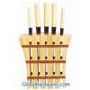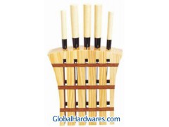 5 PCS Kitchen knife set with wooden stand/block/holder. Used 3Cr13 stainless steel for blade, Plastic handle with wooden color. details:Blade: Stainless steel (3Cr13), Handle: Plastic (PP), and coating of wood grain,very nice, Total 8 PCS,cleaver knife,chef knife,slicer knife,paring knife,utility,wood holder. Packed:1set/gift box,6sets/Ctn,43*35*37.5cm.