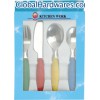 4pcs tableware set,18/0 stainless steel thickness 1.2mm,includes:01 fork,01 knife, 01 soup spoon,01 desert spoon,1 plastic tray,1 color box with window.
