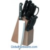15pcs kitchen knife set,Consist of:Chef's knife,thickness:1.5mm,length:8";Bread knife:1.5mm,length:8";Cleaver knife:1.5mm,length:8";Fork:1.5mm,length:6";bone knife:1.2mm,length:6";Utility knife: 1.2mm,length:5";Paring knife:1.2mm,length:3.5";scissor:1.5mm,all length:8";6 piece Steak knife: 1.0mm,length:4.5";block:15*9.2*21cm.client may select PP or ABS handle.,2Cr13 stainless steel,deal wooden block