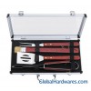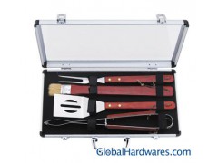 4pcs BBQ tool set,Materials:stainless steel with wooden handle,Thickness of product:1.5mm/pc.includes, spatula:39cm,fork:37cm,tong:41cm,fur brush:40cm,1 set come with carrying aluminium case. our advantage 1. High quality & good price,more quantity, the more reasonable price. 2. Client’s logo is welcome. 3. Can be used for sales,promotion & household
