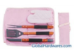 4pcs BBQ set in nylon bag,Easy carrying bbq set in nylon bag,enjoy your rurality life! bbq set key specifications: .Wooden Handle with rubber roller, .Metal Material : stainless steel .Set includes spatula,fork,tongs,solt & peper shakers,glove. .Packing : 16sets/ctn Gross/Net weight: 13/12kgs Size:43*40*36cm .All pieces fit in the special handled carrying nylon bag so you can take them easily with you on camping trips.