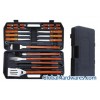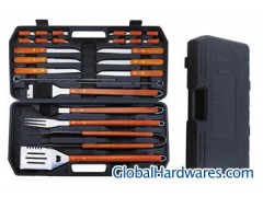 25pcs BBQ tool set,Materials:stainless steel with wooden handle,Thickness of product:1.5mm/pc. Set includes:spatula:53cm,fork:51cm,tong:48cm,fur brush:47cm,copper brush:47.5cm,long skewer:36cm,steak knife:21cm,corn holder:7cm,1 set come with carrying plastic case. our advantage 1. High quality & good price,more quantity, the more reasonable price. 2. Client’s logo is welcome. 3. Can be used for sales,promotion & household
