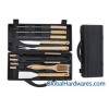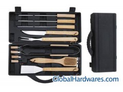 12pcs BBQ tool set,Materials:stainless steel with wooden handle,Thickness of product:1.5mm/pc.includes, spatula:35cm,fork:35cm,tong:35cm,copper brush:30cm,long skewer:38cm,knife:35cm,corn holder:6.5cm,1 set come with carrying plastic case. our advantage 1. High quality & good price,more quantity, the more reasonable price. 2. Client’s logo is welcome. 3. Can be used for sales,promotion & household