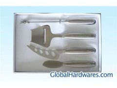 Hot promotion item, 4pcs cheese knives set. The Cheese Knife is made of the high quality S.S.420&S.S.430;Handle style:Hollow inside; 4pcs cheese knives set including : 1pc cheese plane,1pc cheese knife with holes,1pc cheese knife semicircular,1pc cheese cutter. Packing:gift box,24sets/ctn,61.5*42.5*17.5cm/ctn,G.W/N.W:11.5/10.5kgs.