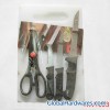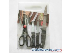 4pcs kitchen tools included: utility knife,steak knife, paring knife, scissors and a plastic cutting board