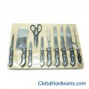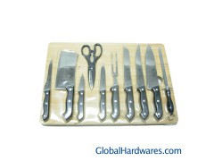 11pcs kitchen knife set included: chef knife, bread knfie, slicer knife,fork,boning knife, utility knife,paring knife, scissor,sharpener,steak knife