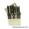 13pcs kitchen knife set, included: chef knife, bread knife,slicer knife, boning knife,utiltiy knife,paring knife,scissor and 6pcs steak knife