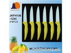 Zirconia diamond is a high temperature synthetic cut stone made from Zirconia by Russian scientist in 1975. JOHNCERA Ceramic Knife is also made from zirconium oxide, one of the highest quality ceramic materials which is second to diamond in hardness. The knife is mainly used for fruit and vegetable cutting. This high-tech Knife is produced by same manufacture craft, high temperature synthetic. Due to the advantage of ceramic knife, such as sharp for ever, avoid the stain from juice of food, corrosion resistant, no metallic taste and smell and so on, JOHNCERA Ceramic Knife is very popular in home and foreign market.