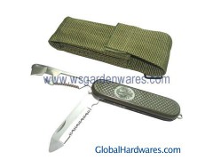 1) handy tools for the great outdoors; 2) all stainless steel components; 4) ABS handle; 5) hand sharpened blade; 6) smooth opening tools.