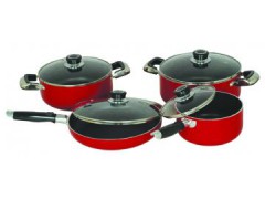 8 cookerware sets are used for cooking, slow cooking, frying, baking and Etc. Human body safe approved. Good performance for clean up, and cooking.