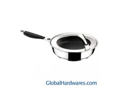 Made of high quality 304 S/S,rust resistance,fade resistance,corrossion resistance; Available in 24cm and 28cm; Three layer pot bottom,the middle layer is aluminum, this special technique makes food heating evenly, and prevent food from burning,can be also store the energy; Phenolic handle design can prevent user's hand from burning; 28cm size is with helper hand,to help users hold the pan more steady; Compatible with induction use, halogen,electic etc.