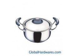 Made of high quality 304 S/S; Available in 18cm,20cm,24cm and 28cm; Three layer pot bottom; Compatible with induction use, halogen,electic etc.