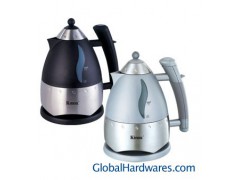 - 360 degree cordless connector for left or right-handed use - concealed heating element for maximum hygiene and minimum cleaning - brings cold water to full boil in less than 3 minutes (240V/3.0KW version only) - Auto switch off with electronic whistle alert (with switch to turn off whistle on sub base) - boil bry and overheat protection - removable filter - dual water windows (water gauge) - power indicator light - splash and tamper proof power socket - GS and CE ratings - Power rating 120V/1.5KW 30V/2.4KW 240V/3.0KW - 1.5 liter capacity in silver champagne and granitd (black)