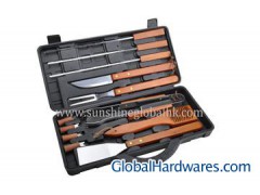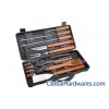 BBQ TOOL SET WITH WOOD HANDLE IN PLASTIC CASE