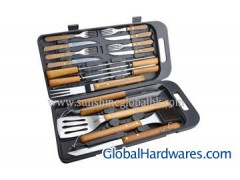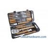 4pcs bbq skewers 1pc spatula 1pc bbq tong 1pc brass wire brush 5pc knives 5pc grill fork Material:stainless stell with wood handle Packing: each set in plastic case Feature:Easily cleaned, high temperature-resistant High quality with competitive price