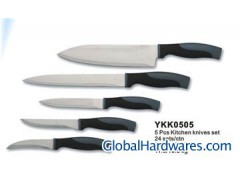 5 Pcs Kitchen knives set Materials:stainless steel 2CR13,handle PP+ rubber Products' specification: 8"chef knife,thickness 1.5mm 8"Meat cleaver,thickness 1.5mm 6" utility knife,thickness 1.5mm 5" steak knife,thickness 1.5mm 3.5: paring knife,thickness 1.5mm