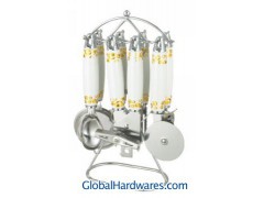 Set includes: can opener, peeler, bottle opener, ice-cream spoon, pizza cutter, tea strainer, knife sharpener and stand. Material: ABS handle + 18/0 stainless steel. With SGS, FDA and LFGB food testing marks. Different handles and colors are available.