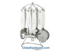 Set includes: can opener, peeler, bottle opener, ice-cream spoon, pizza cutter, tea strainer, knife sharpener and stand. Material: ABS handle + 18/0 stainless steel. With SGS, FDA and LFGB food testing marks. Different handles and colors are available.