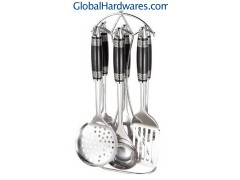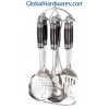 Set includes: one for each soup ladle, skimmer, fork, slotted turner, spoon, spaghetti server and stand. Material: ABS handle + 18/0 stainless steel. With SGS, FDA and LFGB food testing marks. Different handles and colors are available.