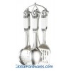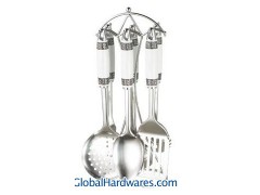 Set includes: one for each soup ladle, skimmer, fork, slotted turner, spoon, spaghetti server and stand. Material: ABS handle + 18/0 stainless steel. With SGS, FDA and LFGB food testing marks. Different handles and colors are available.