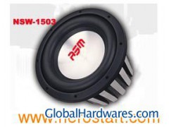 NSW-1503 High Power Subwoofer Model No.: NSW-1503 15" High end of Subwoofer with 1500 Watts Max. Power Aul. Cone Heavy duty Die Cast Basket Dual 4-Layer, Long Voice Coil Size 15" Woofer Cone Material Alu. Cone Surround (NON-PRESSED)CONE FOAM EDGE With Honeycomb Cloth Voice Coil Dual 4-Layer, Long Voice Coil Voice Coil Wire Voice Coil Bobbin Damper (Spider) Super Aramid Fiber Damper Ring Yes Top Plate Projected Pole Yoke with Vented Pole √ Aluminum Heatsink Cooling System √ Magnet Construction Double Stacked (160oz) Basket Design Aluminum Die-Cast Rigid Chassis Gasket 1-Piece Rubber Wire Terminals Silver Spring-Compression Binding Posts Specifications Power Handling 1500 Watts Frequency Response 23-1.2KHz Sensitivity 90dB Ohm Rating DVC (Dual 3 Ohm Coils) Recommended Enclosure Dimensions Mounting Depth