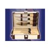 10 pcs knife set - japan style 7.2" cleaver 8" bread 8.4" sashimi 6.6" santoku 6.7"Deba 4.4" Deba 5.0"utility 3" potato 7.5" sharpener Carried case Blade Material:3Cr13, handle: Rubber wood.