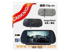 7 inch rearview LCD Monitor with MP5 player With USB, SD Slot, audio signal sending by FM to Car radio speaker. Video file support: AVI, MP4, MPEG2, MPG, RM, RMVB, VOB, 3GP, DAT, MOV; Audio file support: Mp3, wma Photo file support: BMP, GIF, JPEG, PNG, TIFF, JPG - 7-inch 16: 9 TFT-LCD new panel - Power supply: 12V DC -dual video inputs -can be use together with parking sensors & camera - clip-on fitting -with USB+ SD Card slot - Colors available: Beige, black (optional)