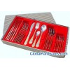 24PCS CUTLERY SET: PACKING:1SET/COLOR BOX,10SETS/CTN QTY:12000SETS/40HQ THICKNESS:1.8--1.5MM,MATERIAL:18/0, GOLD PLATED FOB SHENZHEN USD /SET W/O GOLD PLATED FOB SHENZHEN USD /SET THICKNESS:1.5--1.2MM,MATERIAL:18/0 GOLD PLATED FOB SHENZHEN USD /SET W/O GOLD PLATED FOB SHENZHEN USD /SET