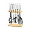 Offer stainless steel hollow handle kitchenware set 7 PCS STAINLESS STEEL HOLLOW HANDLE KITCHENWARE:TURNER,FORK,SPOON,SKIMMER,SOUP LADLE,SPAGHETTI AND WOOD & STAINLESS STEEL STAND。 SUS304 18-8 stainless steel material, thickness:2.5MM, hollow handle, using seamless welding technology, no traces of the surface, with brightness well with polished. PACKING:pc/polybag, 6PCS with stand in color box, 8 sets in export carton. MEAST.60*56*31.5CM 1X20’FT:2160 SETS FOB NINGBO PRICE:USD14.98