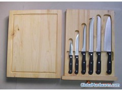 1 X 8" Chef Knife : 1.5mm1 X 8" Carving Knife : 1.5mm1 X 8" Bread Knife : 1.5mm1 X 5.5" Utility Knife : 1.2mm1 X 3.5" Paring Knife : 1.2mm1 Pc Pine Wood Knife DrawerPacking : Color Box