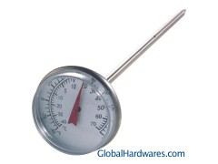 Features: 1) Bi-metal thermometer2) Cast from superior stainless steel3) Case size: 1-3/8"4) Case type: SS rollover case (no ring)5) Lens type: plastic (magnifying)6) Lens gasket: none7) Pointer: red8) Dial face: flat9) Stem type: 0.15" (pointed end)10) Stem length (measured from the hex, including threads): 5, 9, 12"11) Application: used to display and control food temperatures12) Custom orders are welcomed