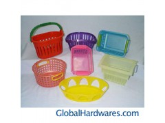 Basket including: large oval basket, plastic rec, Basket w/handle, plastic multi-purpose basket w/handle, plastic flip & stack basket, plastic round shape multi-purpose basket w/2 side handle, rect, basket w/metal handle, plastic bread basket.
