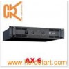 Product Description AX-Series are 2 channels post power amplifiers which adopt excellent round-transformer and high efficiency amplifier output circuit. No matter considering from sound quality or power handling, it meets the needs of all kinds of loudspeakers. With good radiating system, it can work safely for a long time. AX-Series are of high performance in its stability, ultra low noise, complete protection against DC, overheating, short circuit, clipping, distortion and so on. APPLICATIONS Club installations Live performances Theater installations FEATURE Good transient response High reliability, high durable Superior sonic performance Adopt advanced protection circuits Model AX-6 8Ω Stereo Power 600W× 2 4Ω Stereo Power 900W× 2 8Ω Bridged Monon 1800W 4Ω Bridged Monon 2580W Frequency response 20Hz-25kHz ± 0.5dB THD+N(Rated Power, 4Ω /kHz)% 0.03%@1kHz Signal Noise Ration(dB) 101dB Input Impedance 22K Ohm Balanced/11K Ohm Unbalanced Power Requirement 200-240V/50-60Hz Input Sensitivity 1V/1.5V Airframe Dimension 483× 481× 88mm Package dimensions 570× 565× 160mm Net Weight 26.5kg Gross weight 28.5kg