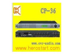 Product Description Inputs and Outputs Input Impedance: >10k Ohms Output Impedance: 50 Ohms Maximum Level: +20dBu Type: Electronically balanced Audio Performance Freq Response: +/- 0.1dB (20 to 20kHz) Dynamic Range: 115dB typ (unweighted) CMMR: > 40dB (20 to 10kHz) Crosstalk: < -100dB Distortion: 0.002% (1kHz @+4dBu) Digital Audio Performance Processor: 32-bit (40-bit ext) floating Sampling Rate: 96kHz Analog Converters: High Performance 24-bit Propogation Delay: 3ms Front Panel Controls Display: 4 x 26 Character Backlit LCD Level Meters: 5 Segment LED Buttons: 12 Mute Controls 12 Gain/Menu Controls 6 Menu Controls Dial Encoder: Embedded Thumb Wheel Connectors Audio: 3-pin XLR RS-232: Female dB-9 Ethernet: Standard CAT-5 (Option) Power: Standard IEC Socket General Power: 90-265 VAC (50 / 60Hz) Dimensions: 19× 1.75× 9 (483× 44× 229mm) Weight: 10 lbs / 4.6 kg Audio Control Parameters Gain: -40 to +15dB in 0.25dB steps Polarity: +/- Delay: Up to 450ms per I/O Equalizers (6 per I/O): Type: Parametric, Hi-shelf, Lo-shelf Gain: -30 to +15dB in 0.25dB steps Bandwidth: 0.02 to 2.50 octaves (Q=0.5 to 72) Crossover Filters (2 Individuals per Output): Filter Types: Butterworth, Bessel, Linkwitz Riley Slopes: 6 to 48dB/oct Limiters: Threshold: -20 to +20dBu Attack: 0.3 to 100ms Release: 2 to 32X the attack time System Parameters No. Of Programs: 30 Configuration: Generic, 2, 3, 4-Way Delay Units: Ms, ft, m Frequency Modes: 36 steps/oct, 1Hz resoultion Security Locks: Any individual menu Channel Names: 6 characters CP-Series processors are our new products specially design for CVR loudspeaker system. At present, we have 4-in 8-out model CP-48 and 3-in 6-out model CP-36. The CVR CP series processor includes all necessary functions for loudspeaker management applications. From hardware A/D-DSP-D/A selections, to software EQ-Crossover-Limiter algorithm designs, it keeps the signal path clean and musical. Recent improvements make the CP Series Processor an easy choice among professionals who demand high sonic quality in the analog world. A complete set of parameters include I/Q levels, delay, polarity, 6 bands of parametric EQ per channel, multiple crossover selections and full function limiters. Precise frequency control is achieved with its1Hz resolution. Input and outputs can be routed in multiple configurations to meet any requirement. The CP Series Processor can be controlled or configured in a real time on the front panel or with the intuitive PC GUI via RS-232 or the optional Ethernet interface. Multiple setup storage and system security complete this professional package